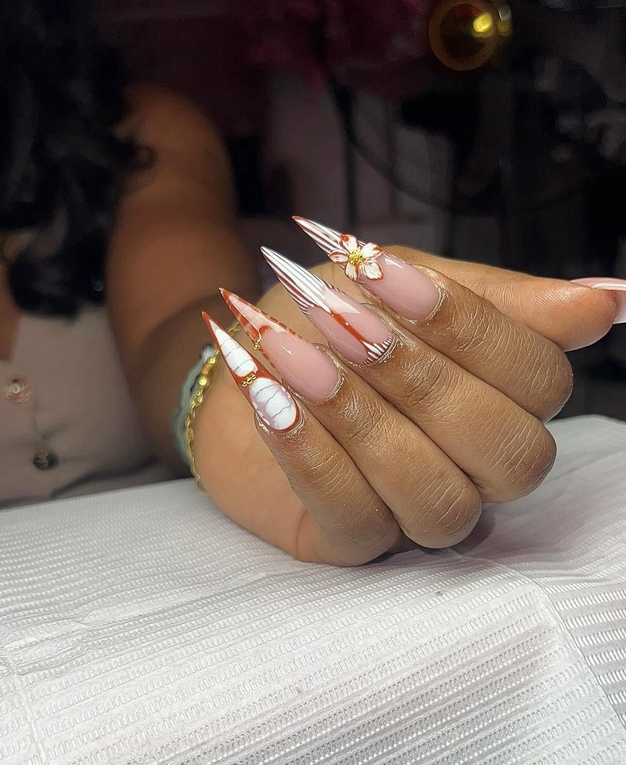Almond acrylic nails are sculpted using durable acrylic overlays or tips to form the signature almond shape. They’re designed to be sleek, strong, and elegant — perfect for those who want length and durability without going over-the-top. This shape is especially flattering for most hand types, as it elongates the fingers and creates a soft, feminine silhouette.